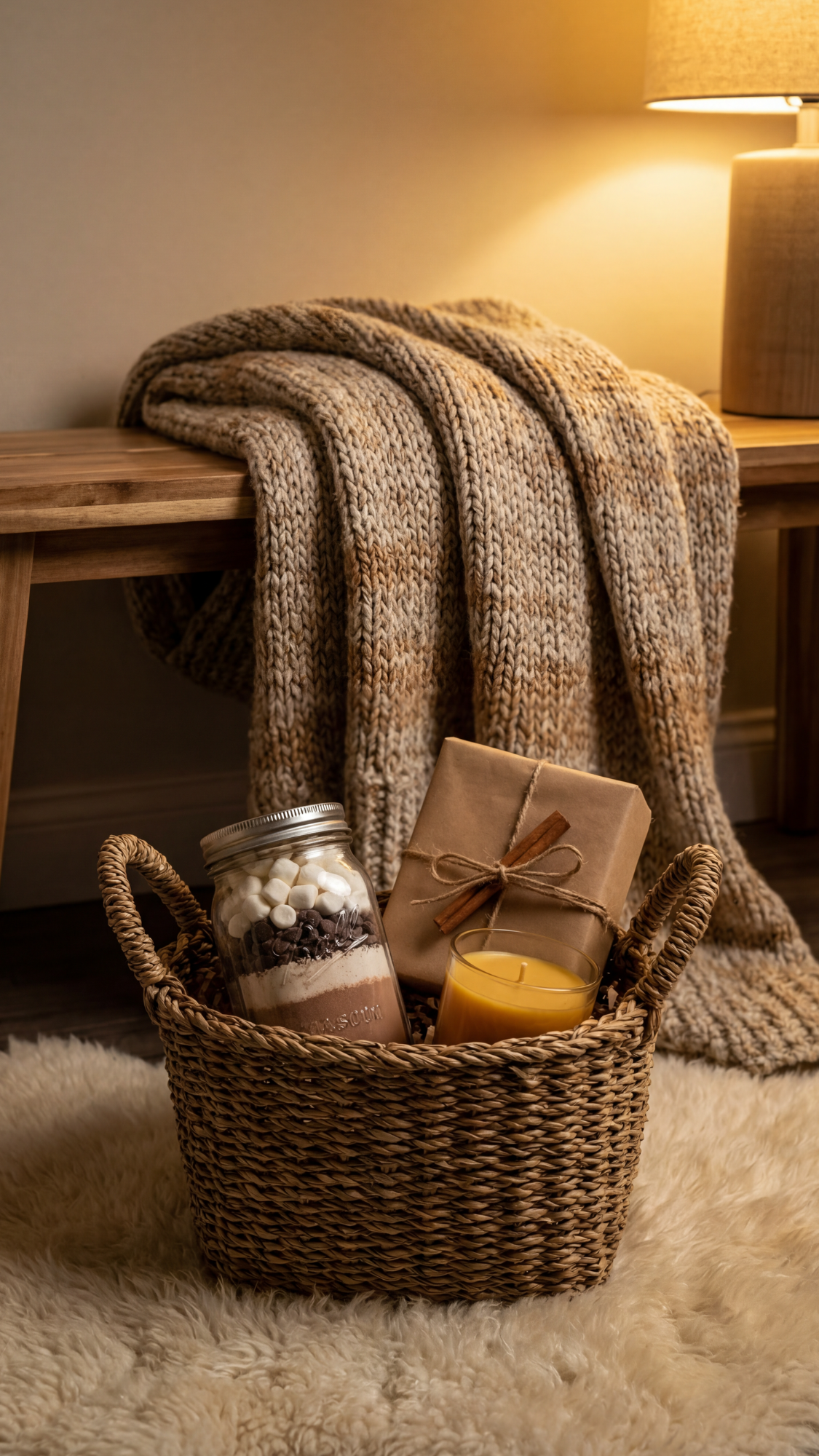 A hygge-in-a-box kit delivers pure cozy-core energy in one simple package. You start with a small basket, box, or crate and line it with a soft cloth or tissue in calm, neutral tones. Then you add a few quiet-night essentials: a tea blend, a small candle, cozy socks, and maybe a bar of chocolate or a tiny journal. You keep materials soft and tactile—wool, cotton, kraft paper, wood—so the whole thing feels warm before anyone even opens a package inside. A handwritten card that suggests a “no-plans night” or a “phone-on-silent evening” sets the tone without sounding preachy. When the recipient opens this, they see a ready-made excuse to slow down and lean into a peaceful winter evening.